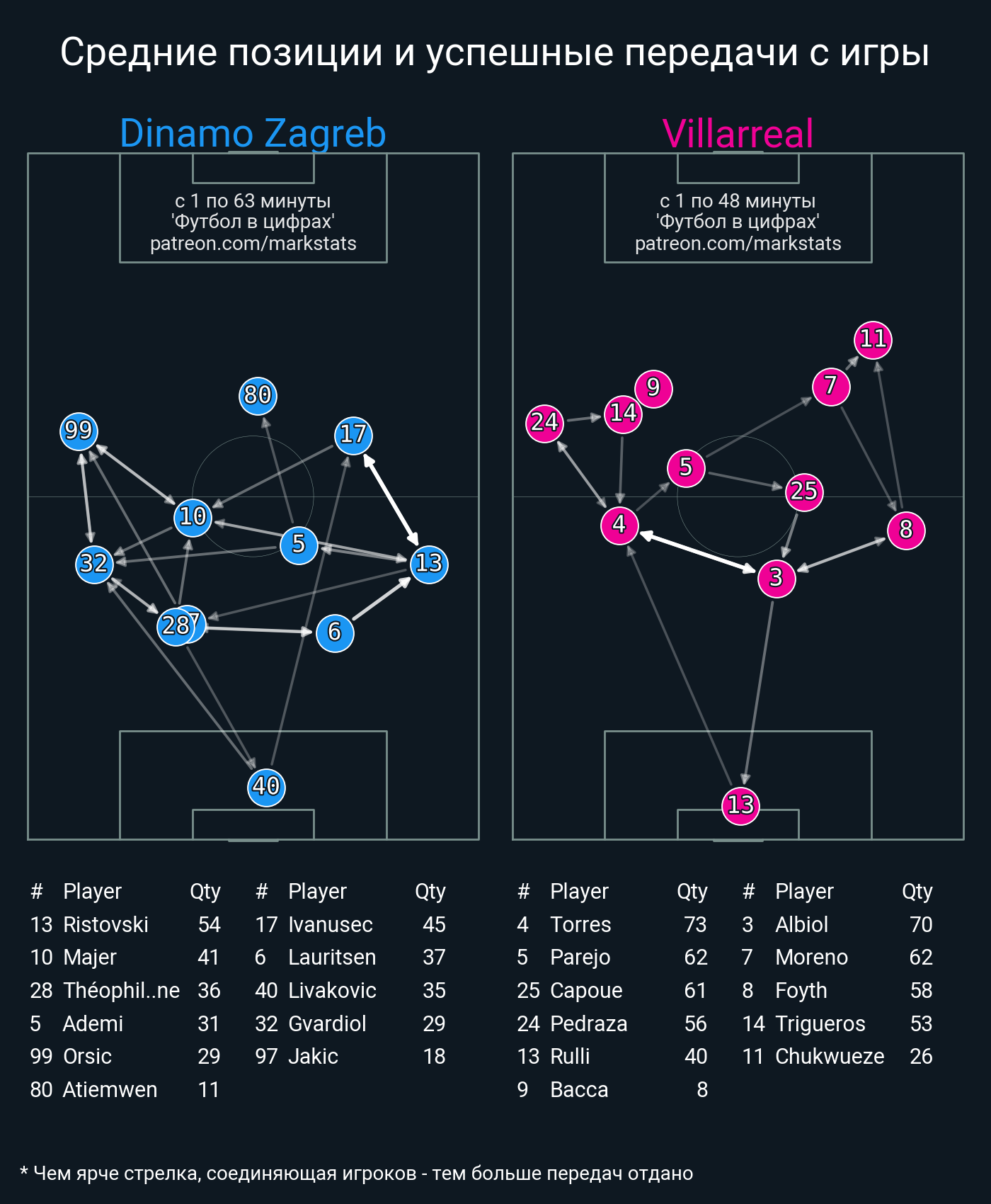 ▪ 48 успешных передач из 60 попыток (4 с продвижением, 7 на трети соперника)