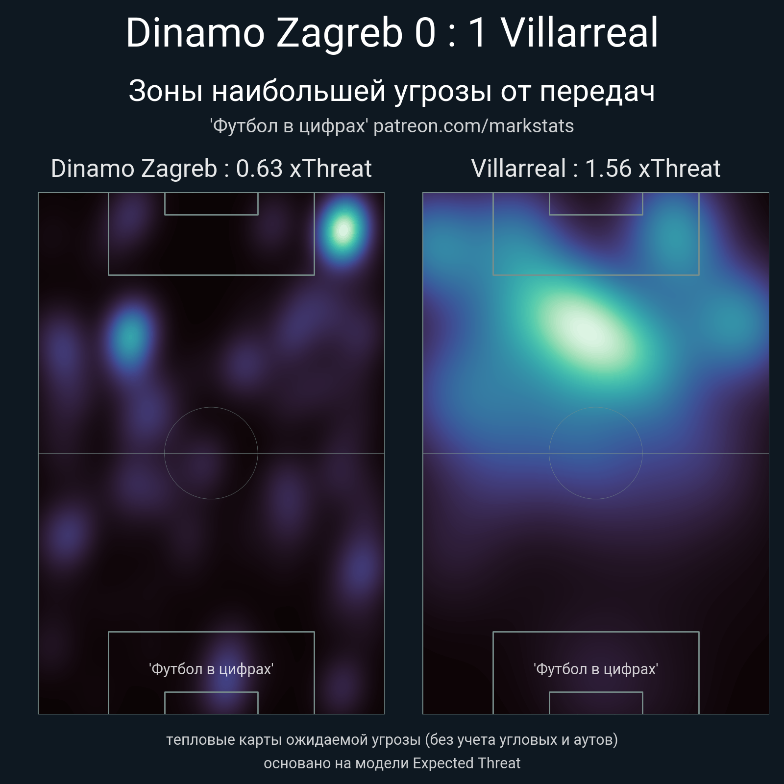 ▪ xThreat без учета угловых: 0.63 - 1.56