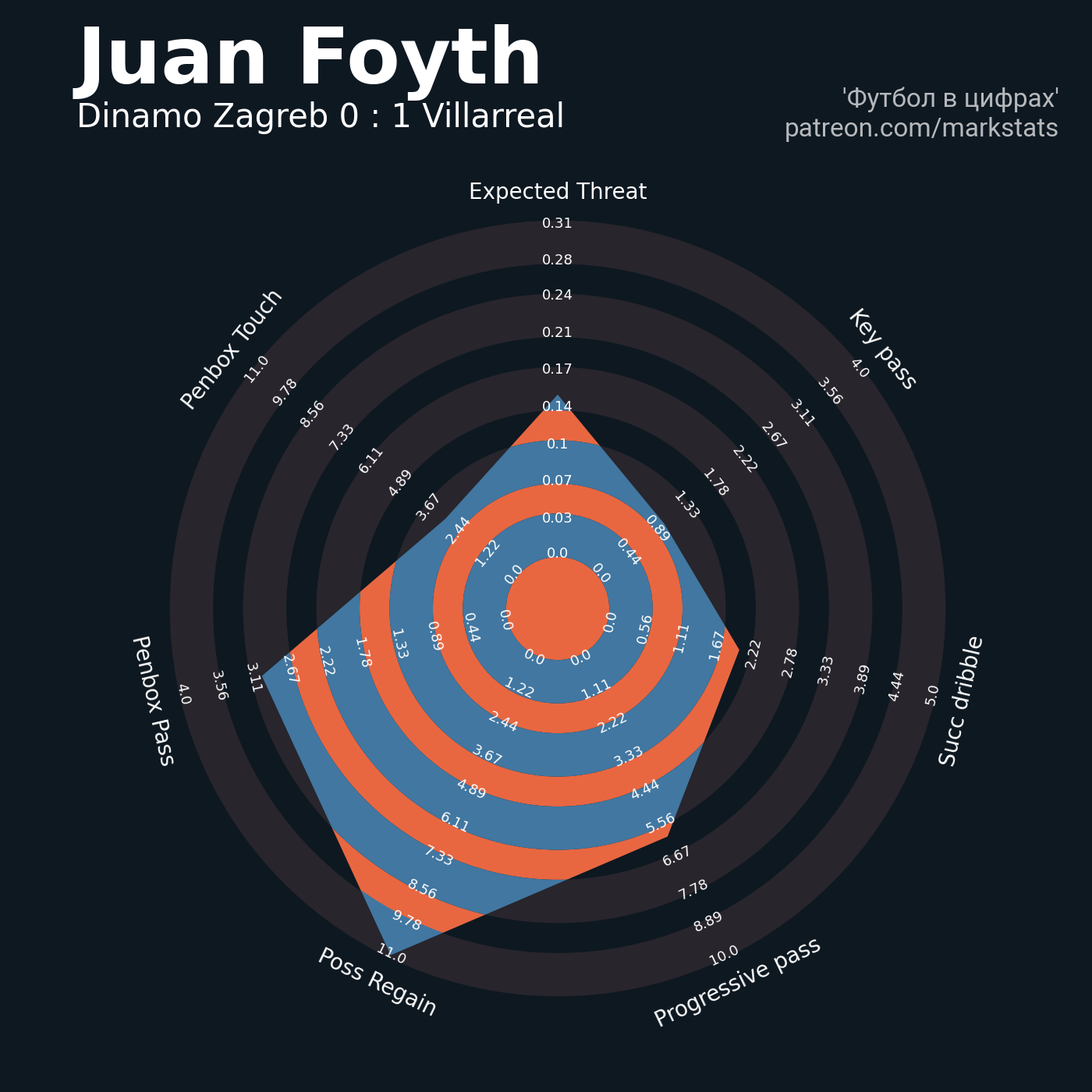 ▪ 0.16 очка xT (+0.02 со стандартов)
