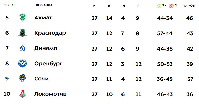 Динамо краснодар таблица