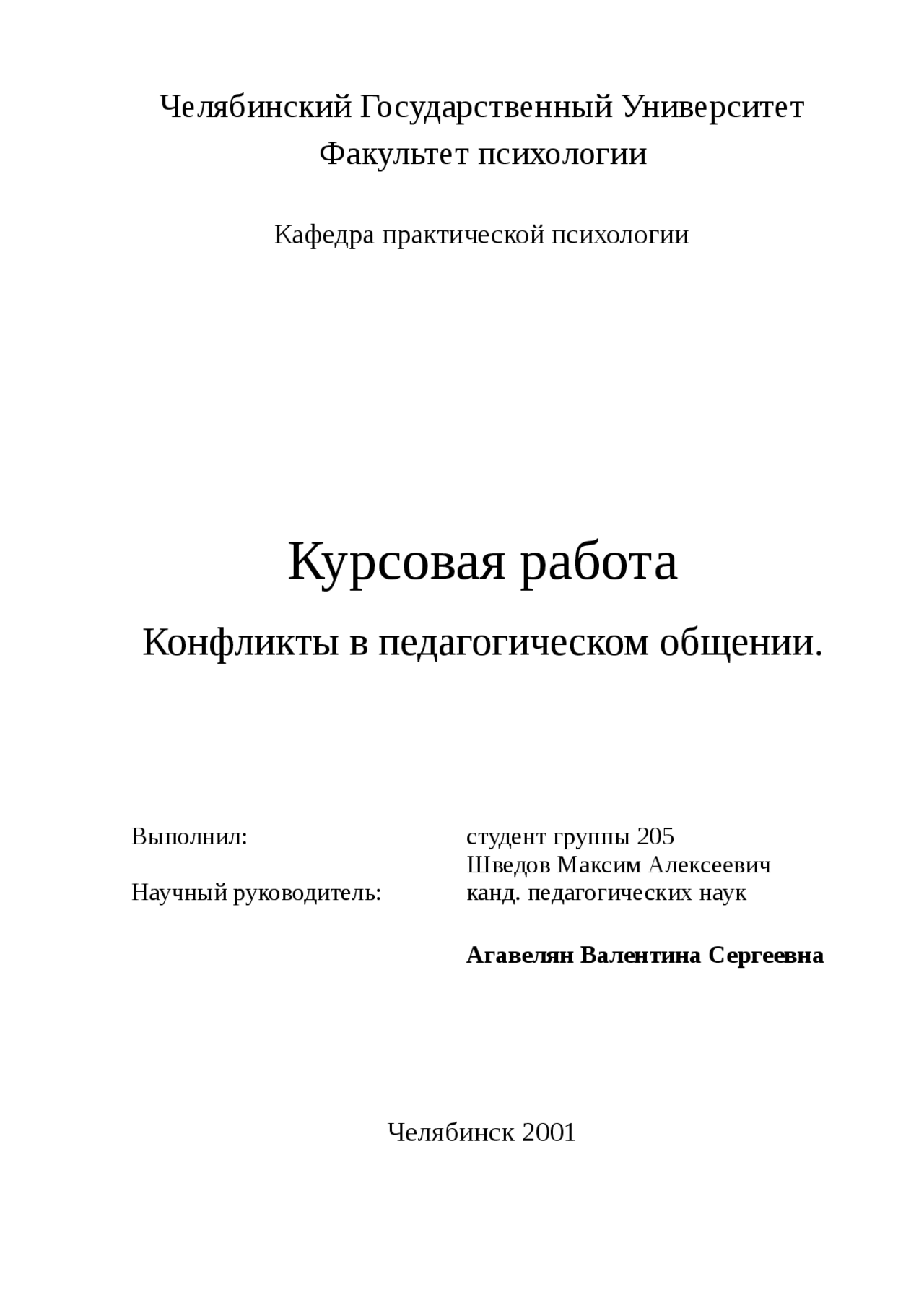 Дипломная работа: Управление конфликтами в педагогическом . . .