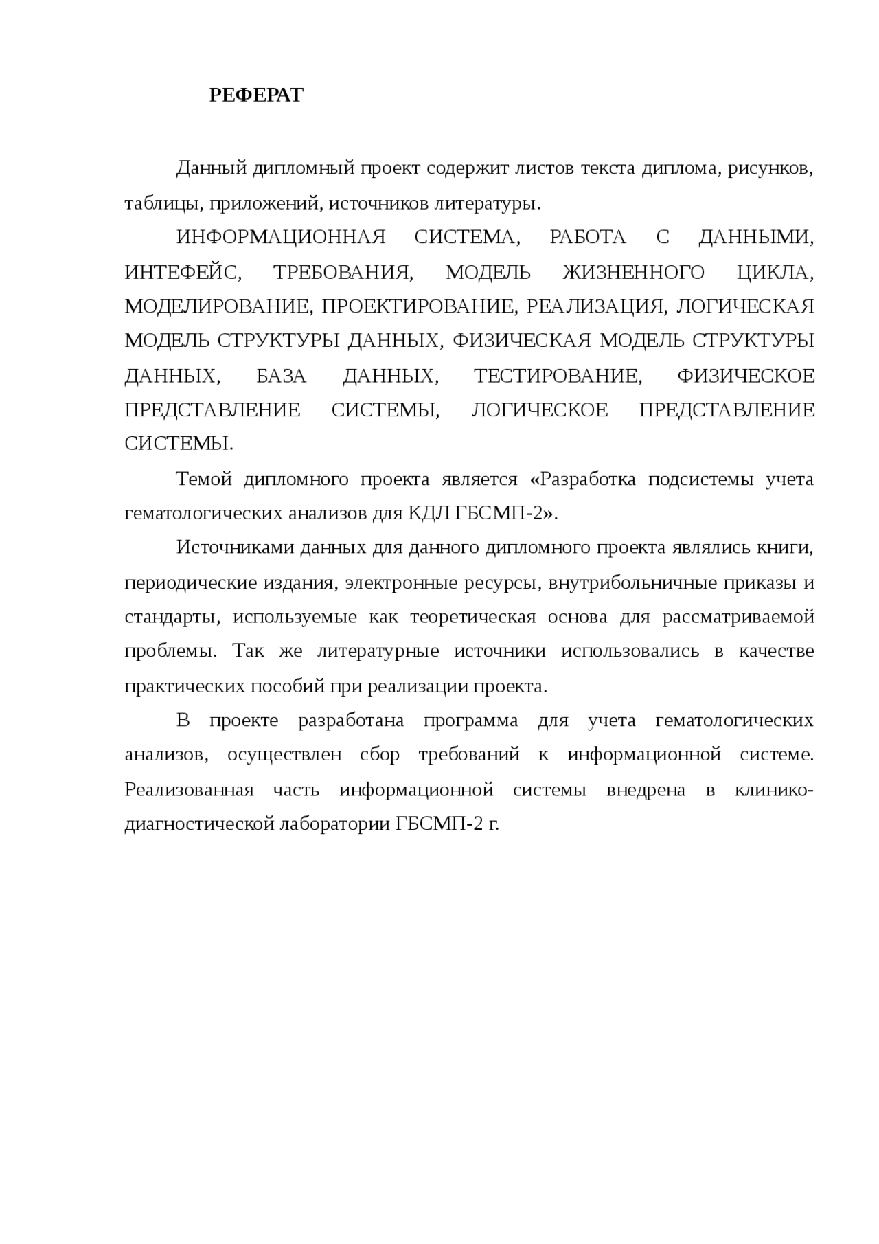 Разработка подсистемы учета гематологических анализов для КДЛ ГБСМП- 2 (стр . 1 из 12)