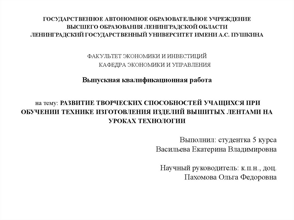 РАЗВИТИЕ ТВОРЧЕСКИХ СПОСОБНОСТЕЙ МЛАДШИХ ШКОЛЬНИКОВ НА УРОКАХ ТЕХНОЛОГИИ . Дипломная работа . студента 6 курса факультета педагогики, психологии и начального образования