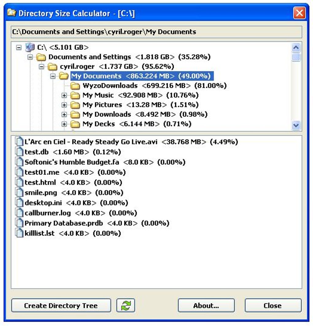 Dir размер
