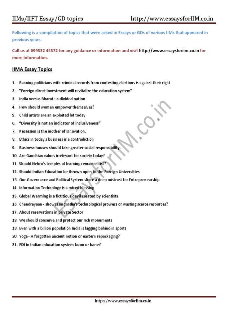 100 College Essay Topics