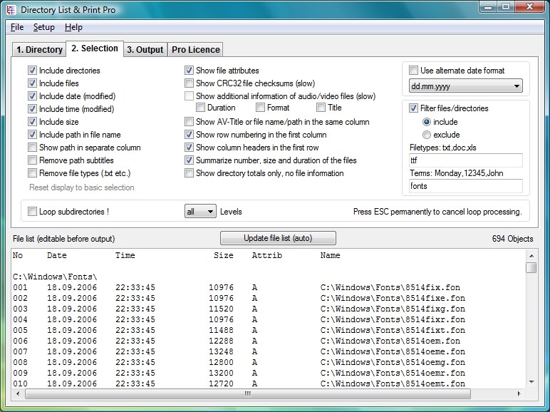 Directories list