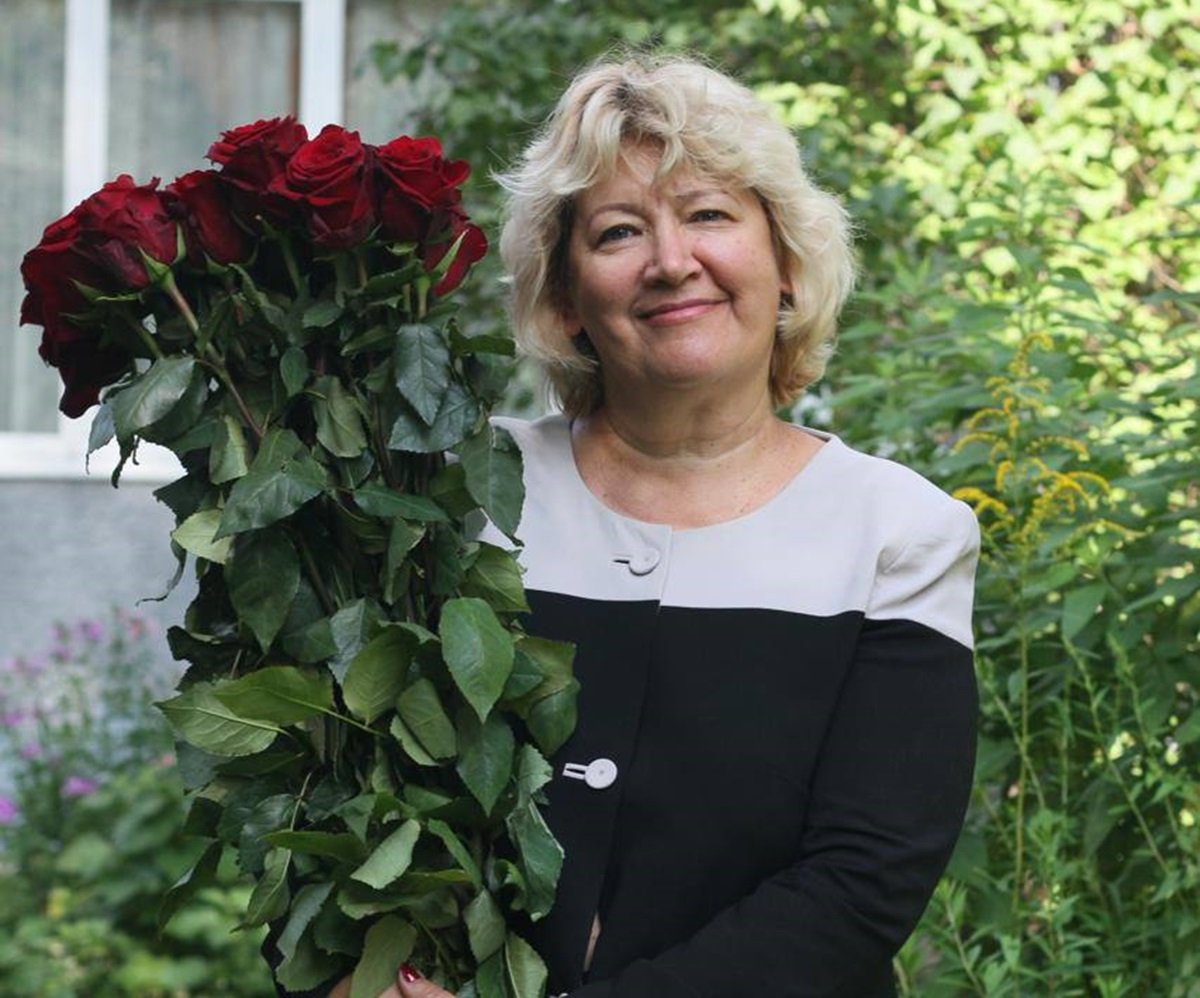 Директор школы в цветах