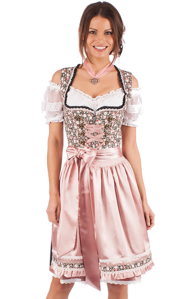The dirndl is regarded as a folk costume (in German Tracht). It developed as the clothing of Alpine peasants between the 16th and 18th centuries.[1][4][5] Today it is generally considered the traditional dress for women and girls in the Alps, and has particular designs associated with different regions. The usual masculine tracht counterpart of the dirndl is Lederhosen.