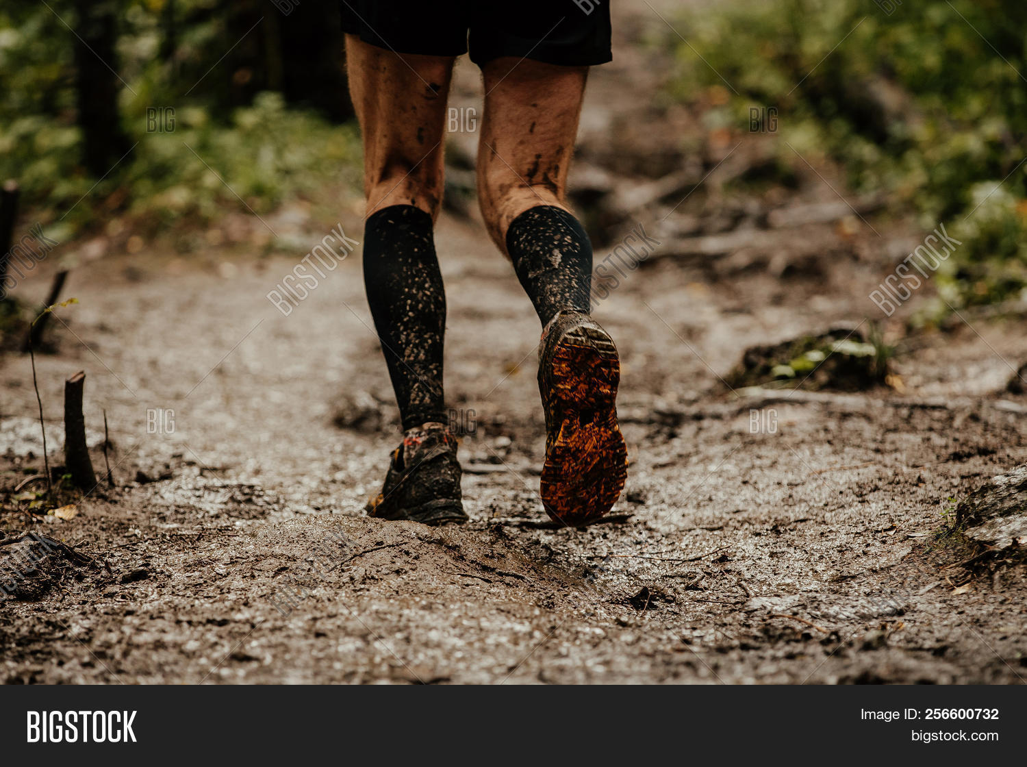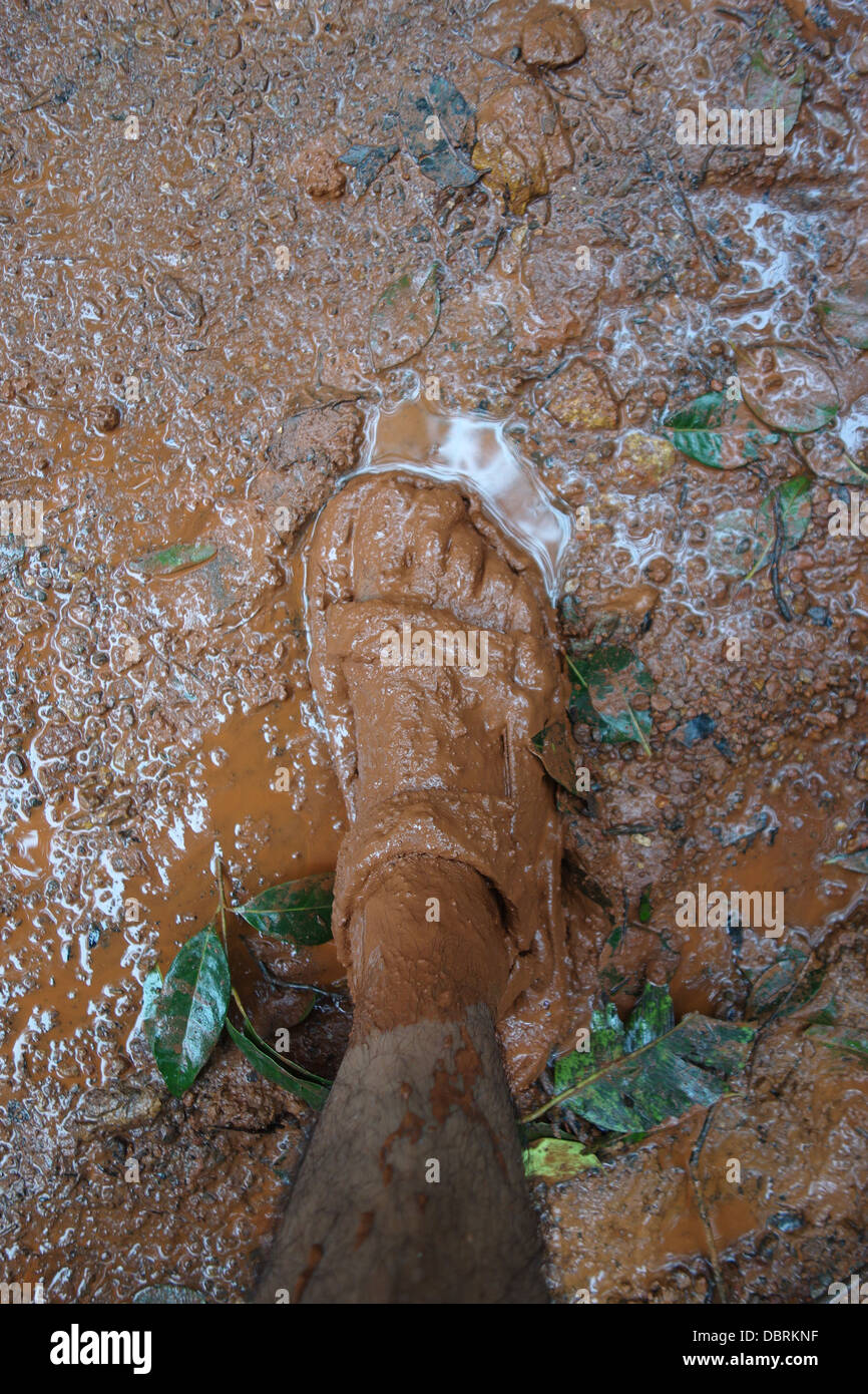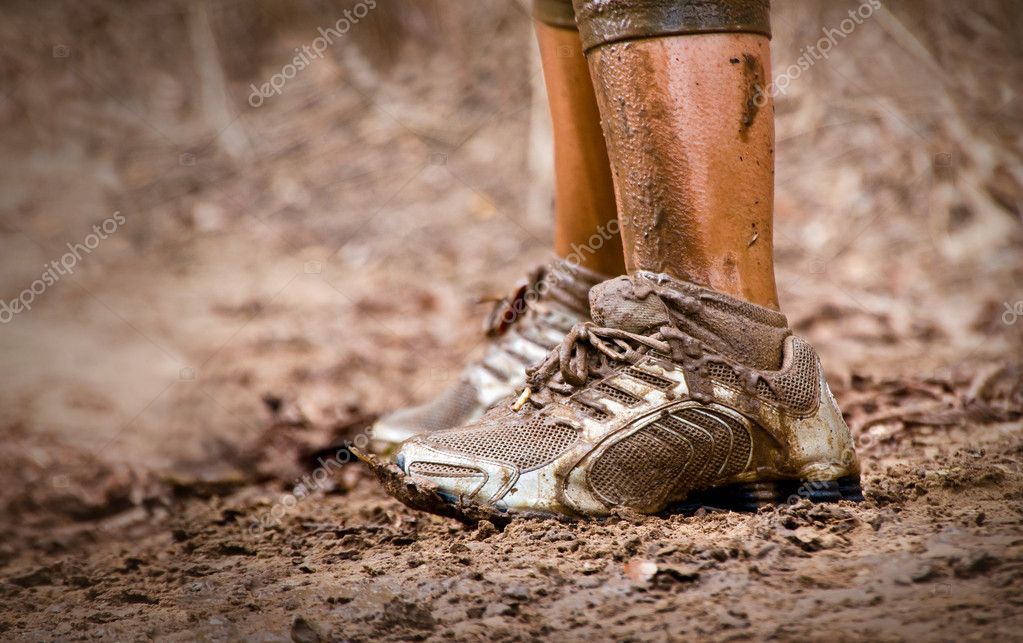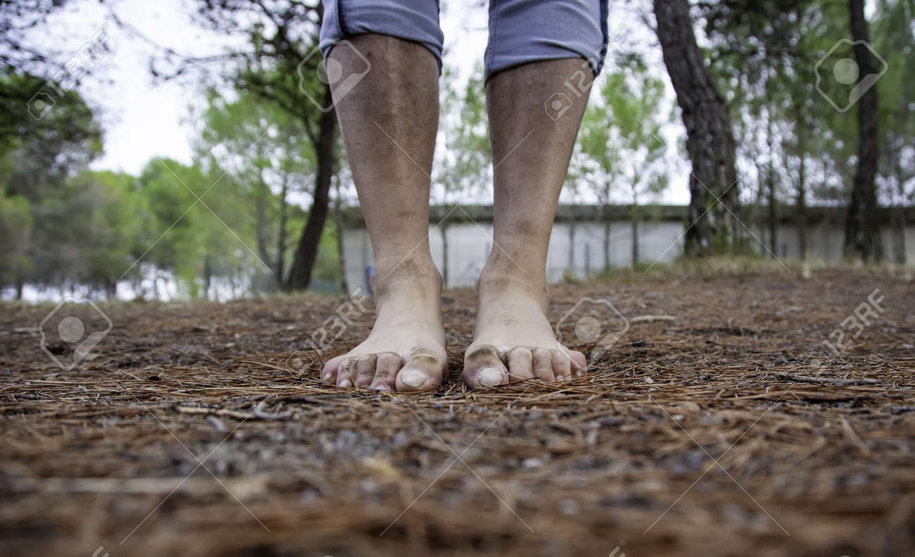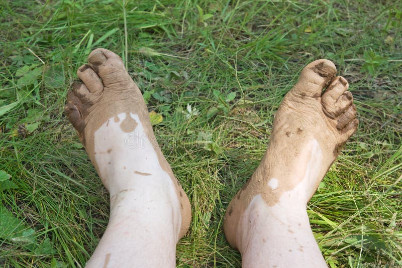 Dirty muddy feet forest
