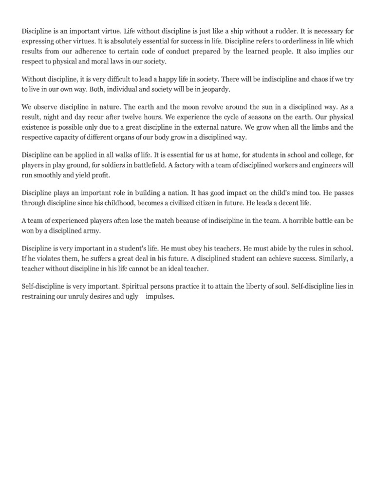 Discipline Essays For Students Life