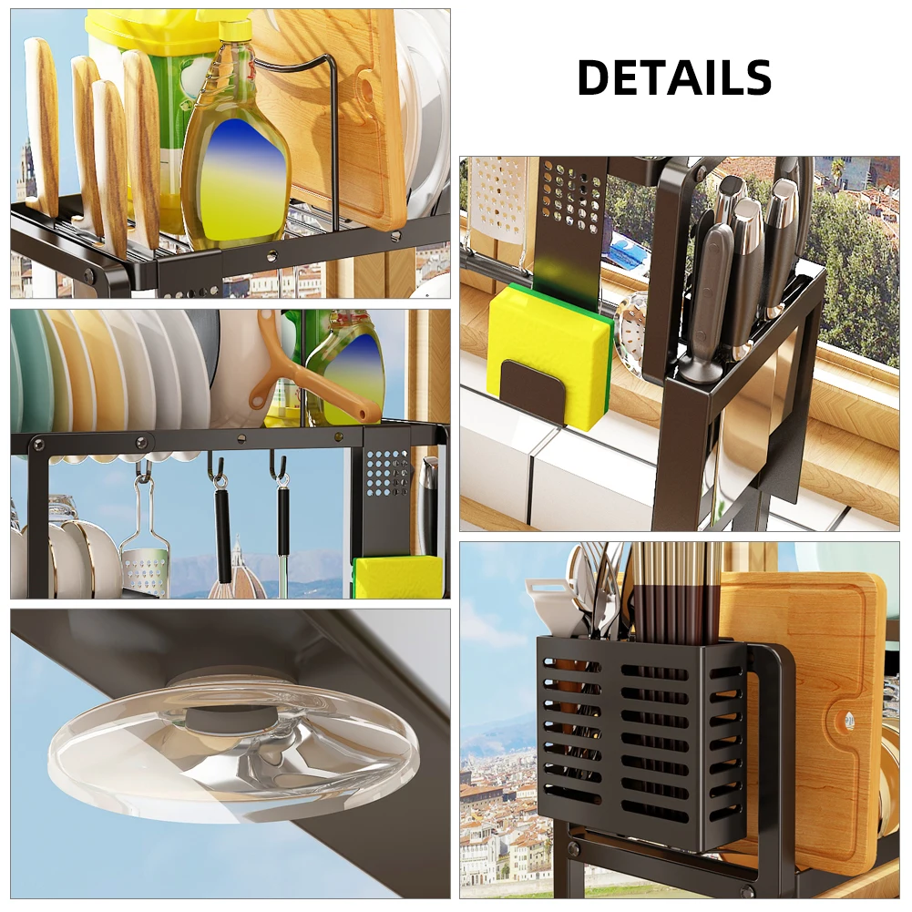 hziBErHVHere you can buy Dish Drying Rack Length Height Adjustable Dish Drainer Kitchen Storage Rack with 3 Hooks Sponge Cutlery and Cutting Board Holder with free delivery to your post office.
