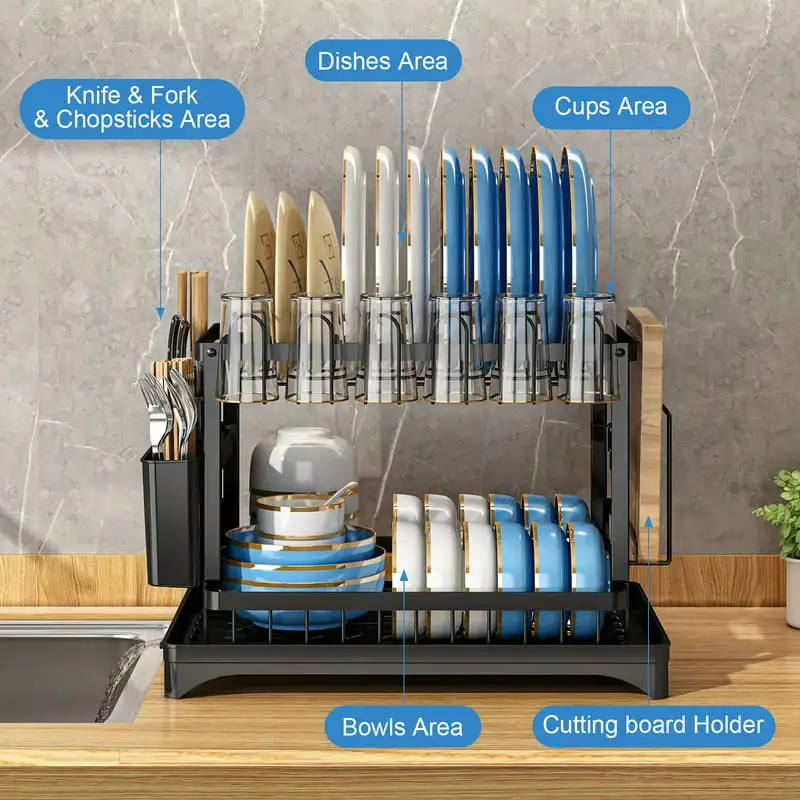 KlYkqKmieOHere you can buy Dish Drying Rack,2 Tier Dish Racks with Water Tray Dish Drainer for Kitchen Counter with Utensil & Cup Holder with free delivery to your post office.