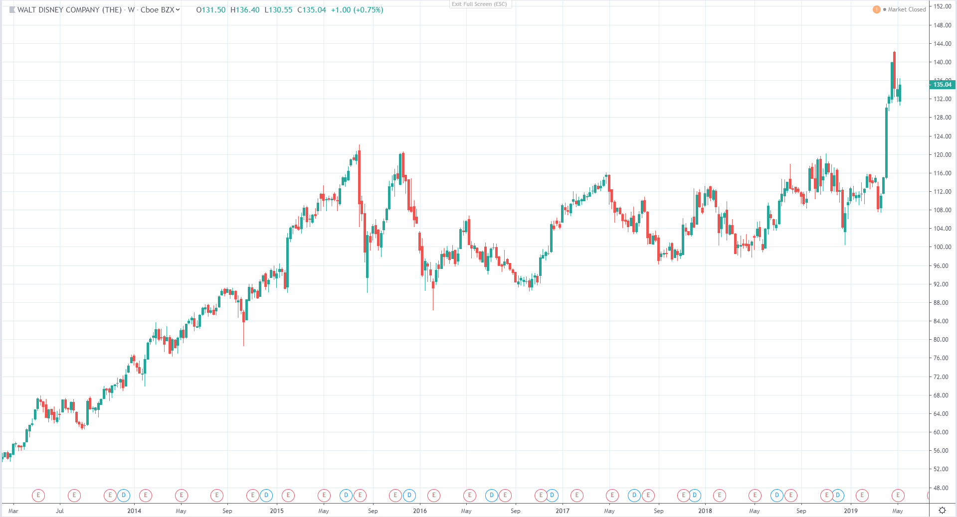 Резюмирую: The Walt Disney - интересная компания с богатой историей. Ее продукт понятен каждому, соответственно компанию легче анализировать ритейл инвестору. На данный момент компания развивается как и органически (создание нового сервиса - Disney +), так и за счет поглощения других компаний (недавняя сделка с FOX). Средне- и долгосрочно компания выглядит очень привлекательно.