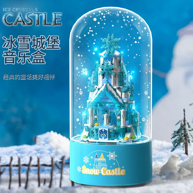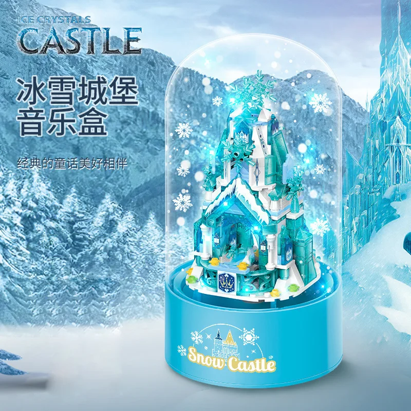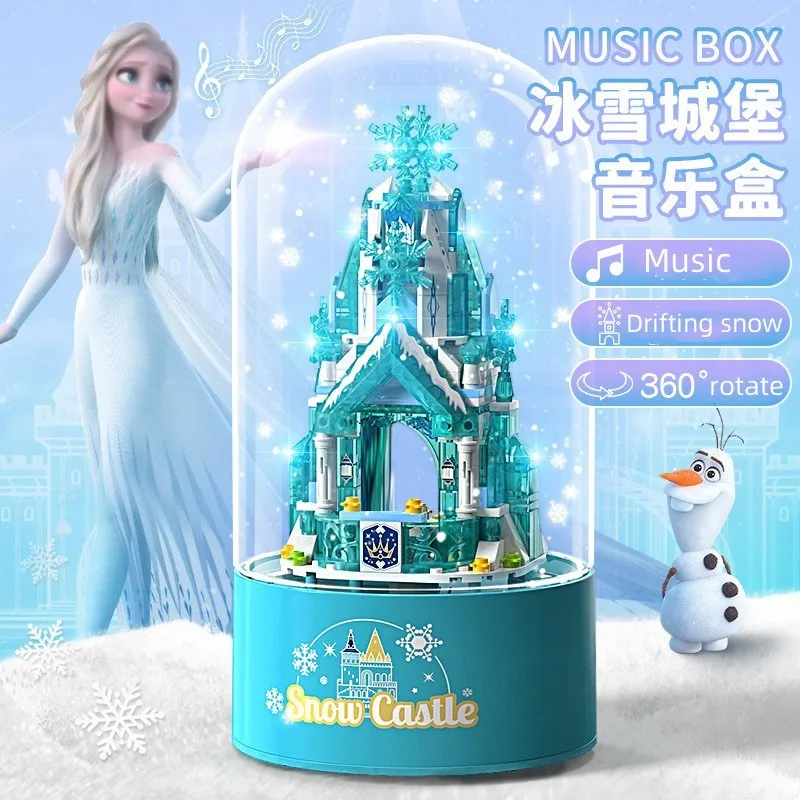 Disney Elsa Princess Castle Building Blocks Bricks Music Box Rotating Light Fairy Tale Castle Children's Christmas New Year Gift - Купить с бесплатной доставкой