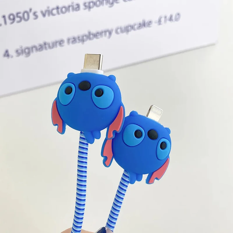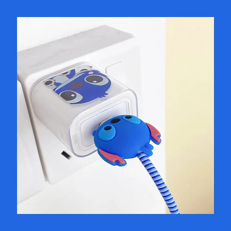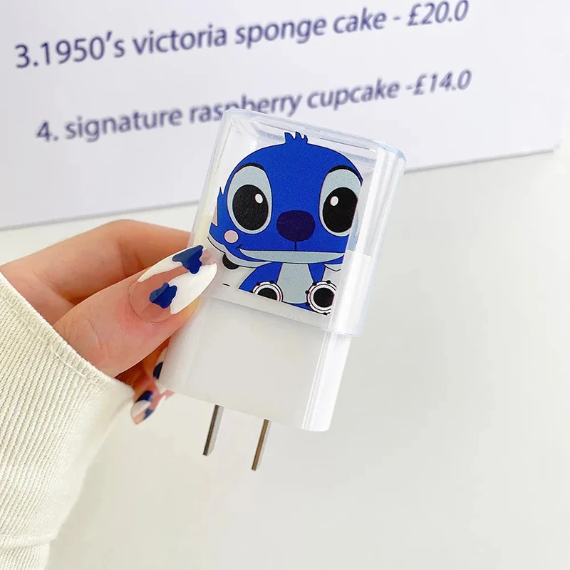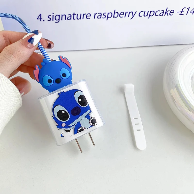 Disney Stitch IPhone Charger Cable Transparent Protector Case Winder Anime Figures USB Data Line Head Protection Cover 18W 20W - Купить с бесплатной доставкой