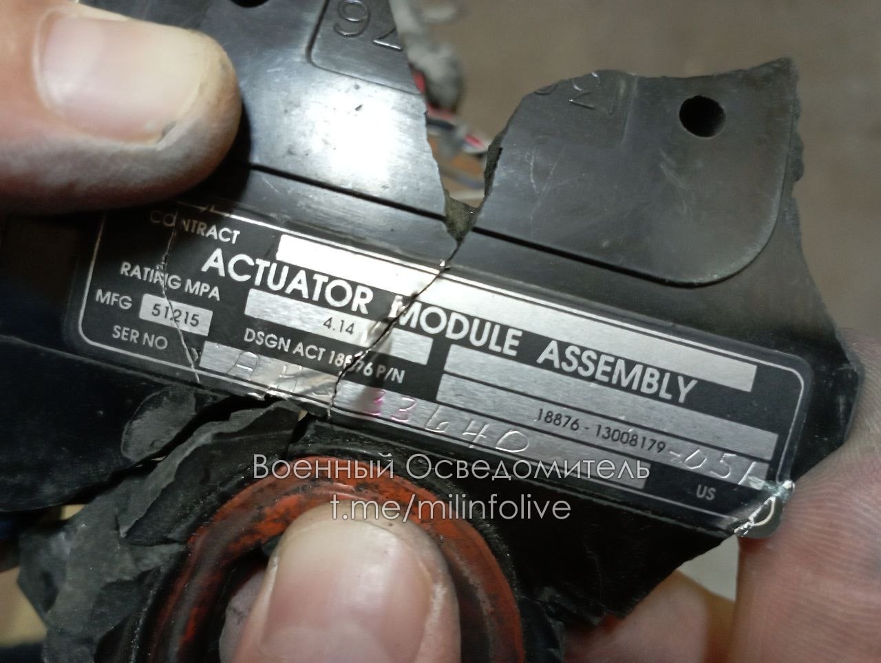 The pro-Russian telegram channel Voenny Osvedomitel (Military Informant) published photos of fragments of a GMLRS rocket deployable by HIMARS, allegedly found in Enerhodar.