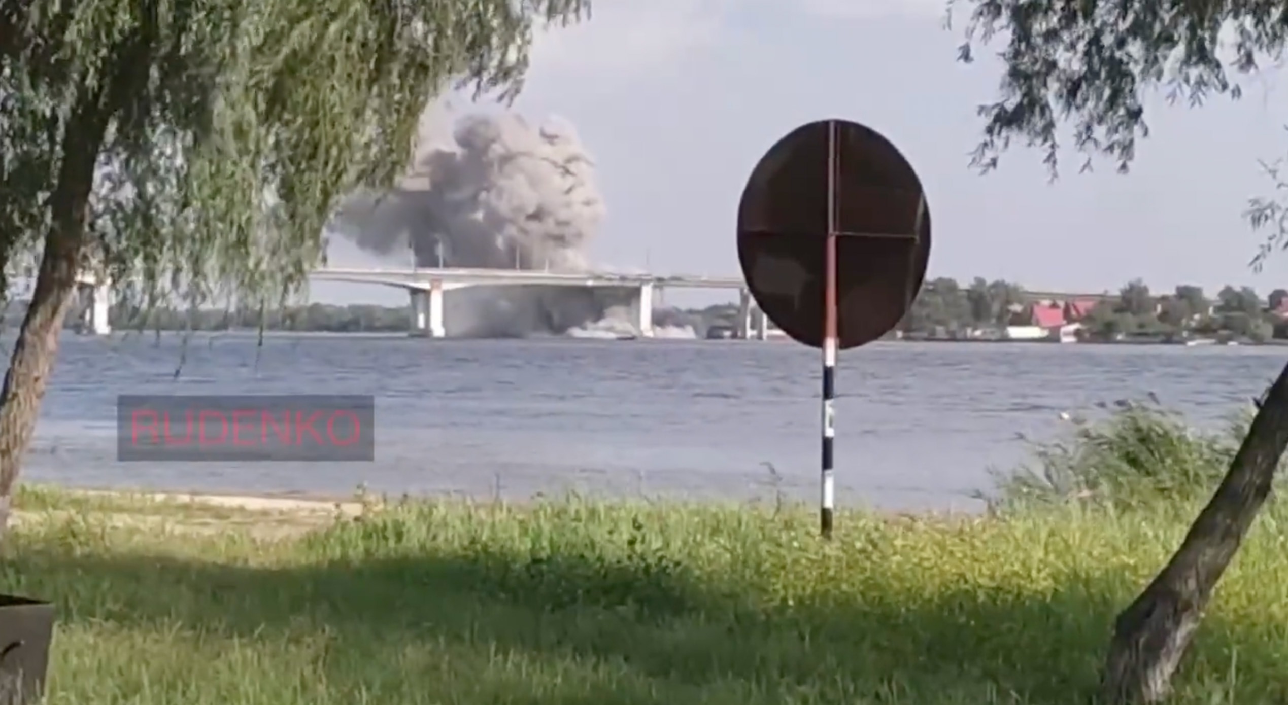 There is also video footage of strikes on an improvised ferry crossing made of pontoon sections near the Antonivskyi bridge.