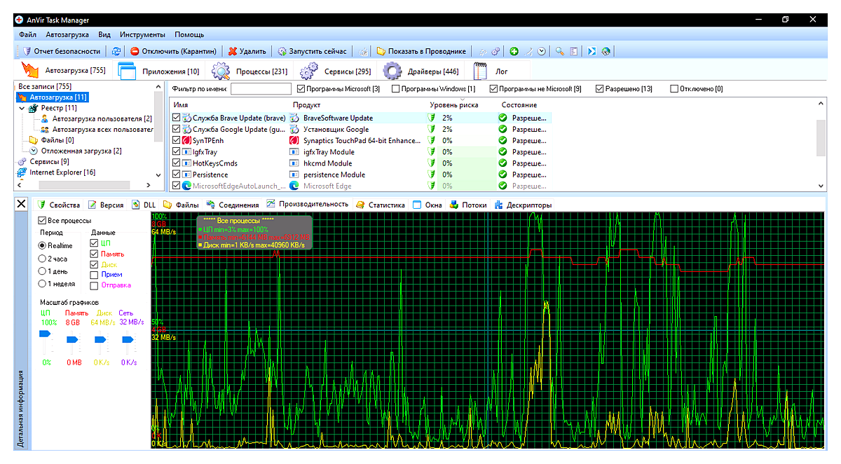 Диспетчер задач мышкой