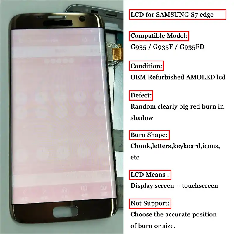 Экран для замены в Samsung Galaxy S7 edge . Замена экрана с дисплеем на Samsung Galaxy S7 является весьма кропотливой работой, особенно есть учесть-то, что сам экран имеет закругления на боковых гранях . Здесь, вам как никто другой поможет сервисный центр .