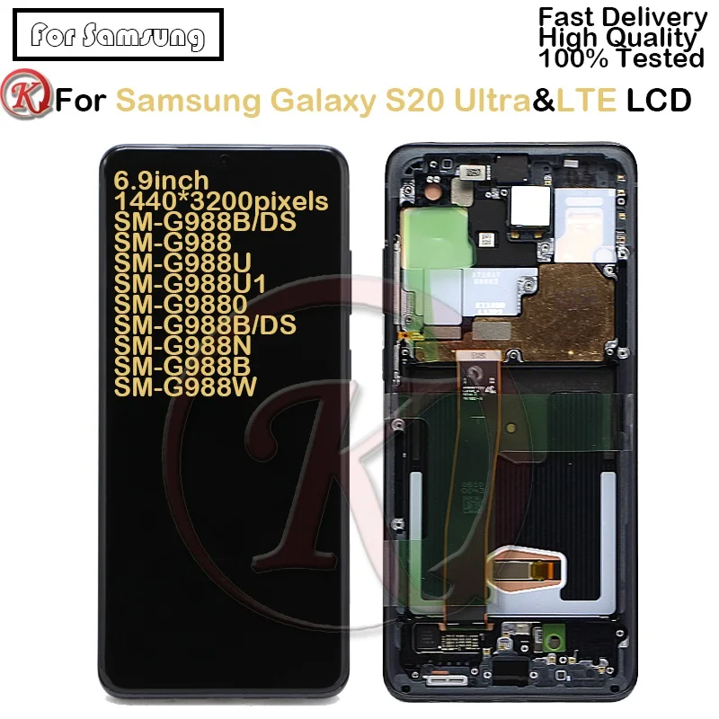4 647,43 руб . Бесплатная доставка . 4 .9 . 53 продано . Professional Mobile Screen LCD Store . Новый ЖК-дисплей S20 Ultra для Samsung Galaxy S20 Plus, ЖК-дисплей с рамкой 1440*3200, S20 SM-G981B S20 Plus G986F/DS G988F, дисплей с сенсорным экраном .