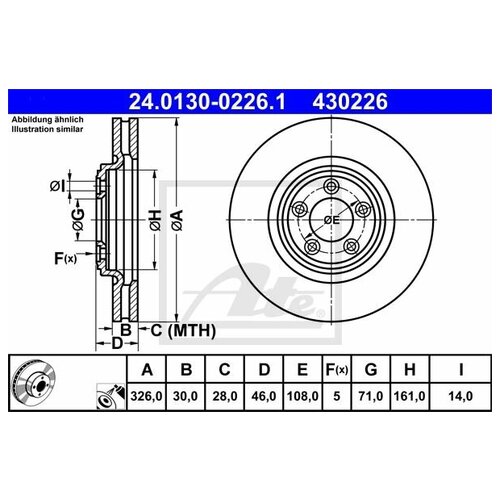 ATE 24013002261 Disque de frein voie évent.[326x30] 5 trous