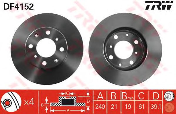 Disque de frein Honda Jazz 1.2-1.4 02-/logo 1.3 99-02 ventilateur avant d=240mm. TRW/Lucas art. DF4152