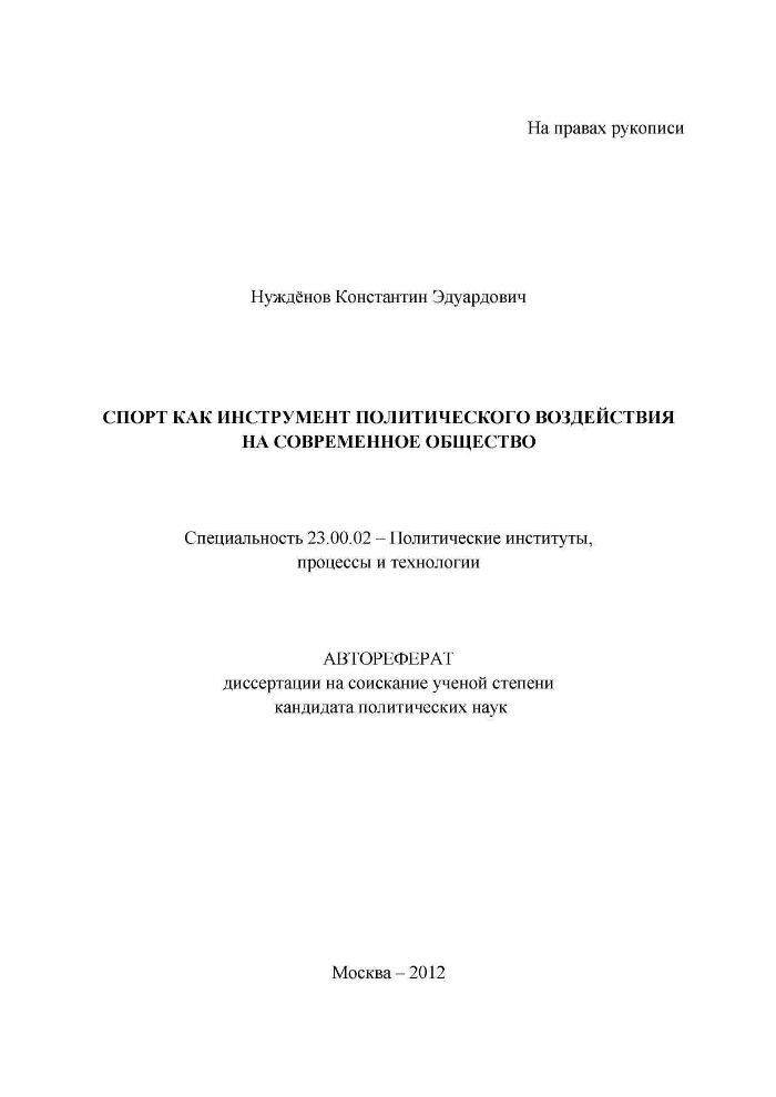 Диссертация на тему «Спорт в социальном измерении . . .