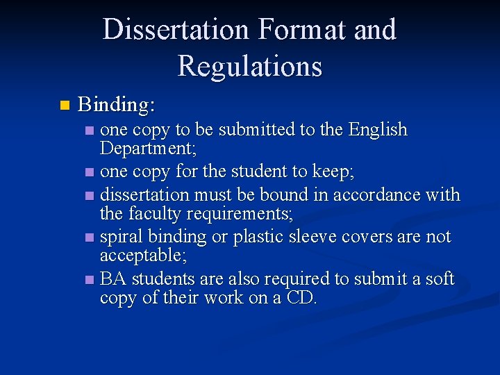 Dissertation Format and Deadlines - Graduate Program