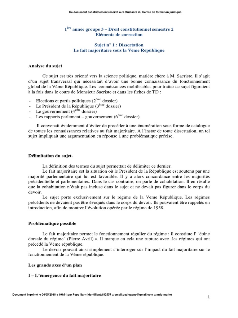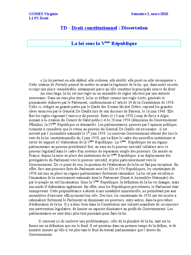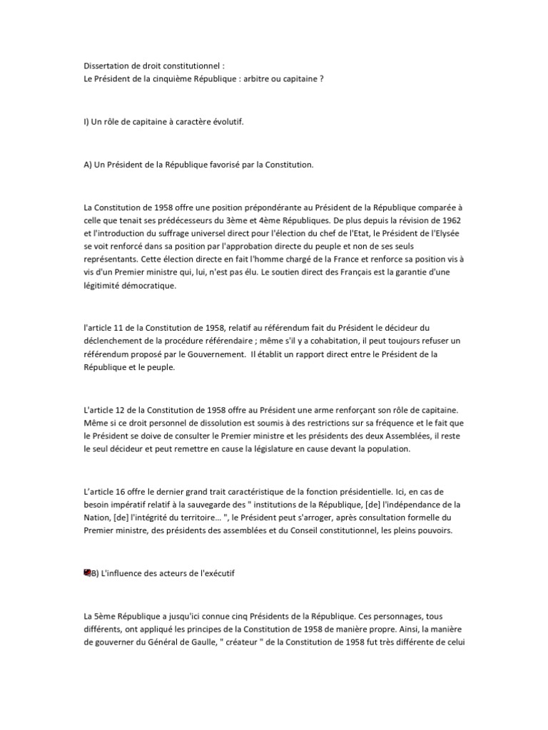 Dissertation Droit Constitutionnel 5eme Republique