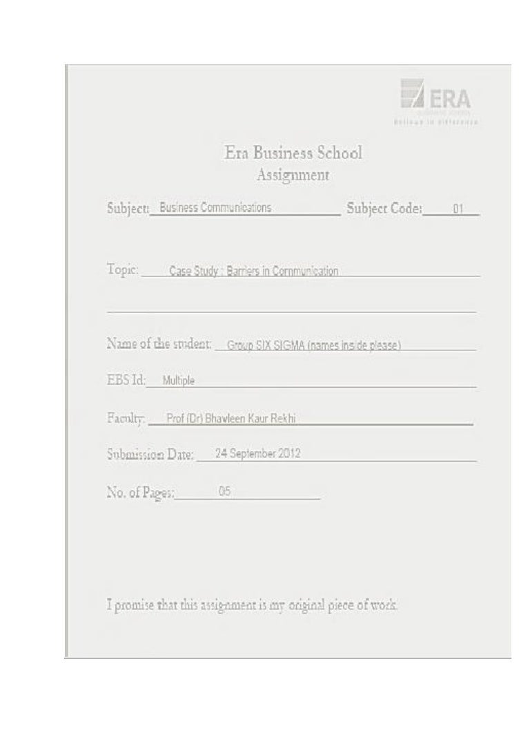Essay Title Page Sample