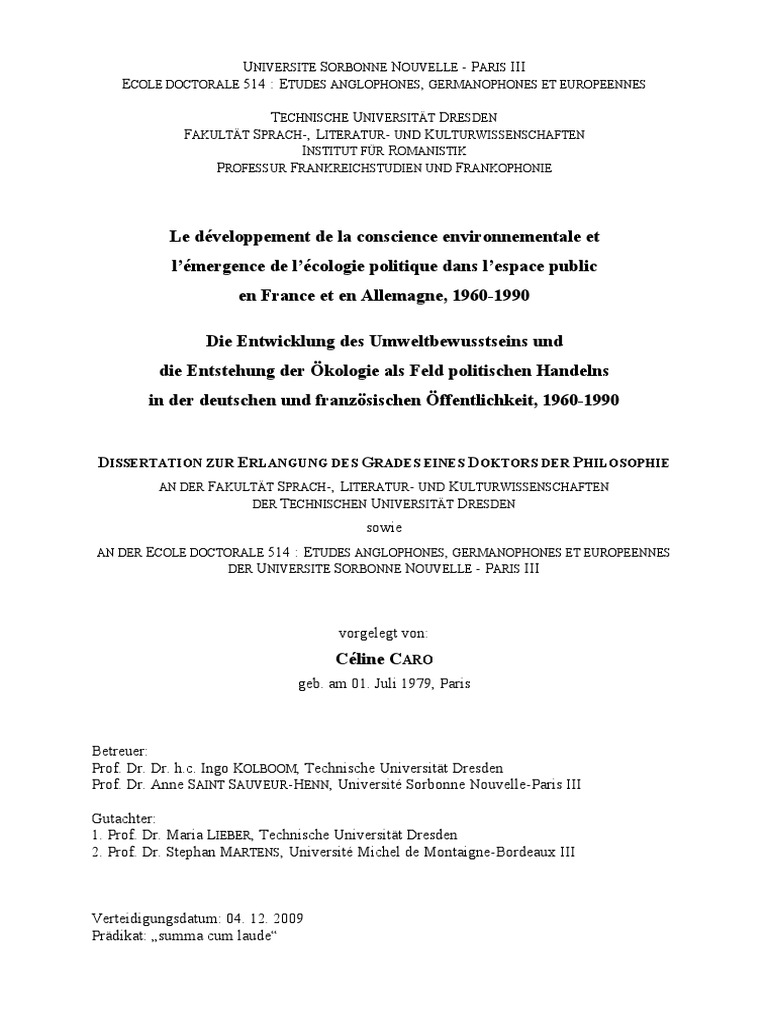 Dissertation L Ecologie | Etudier