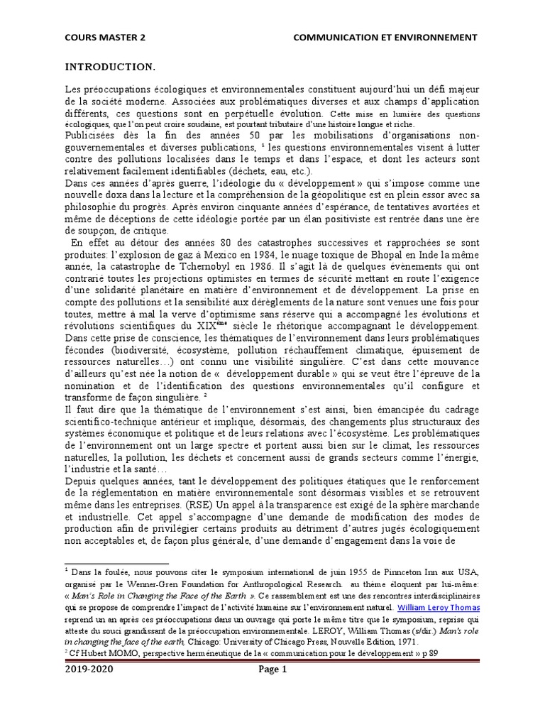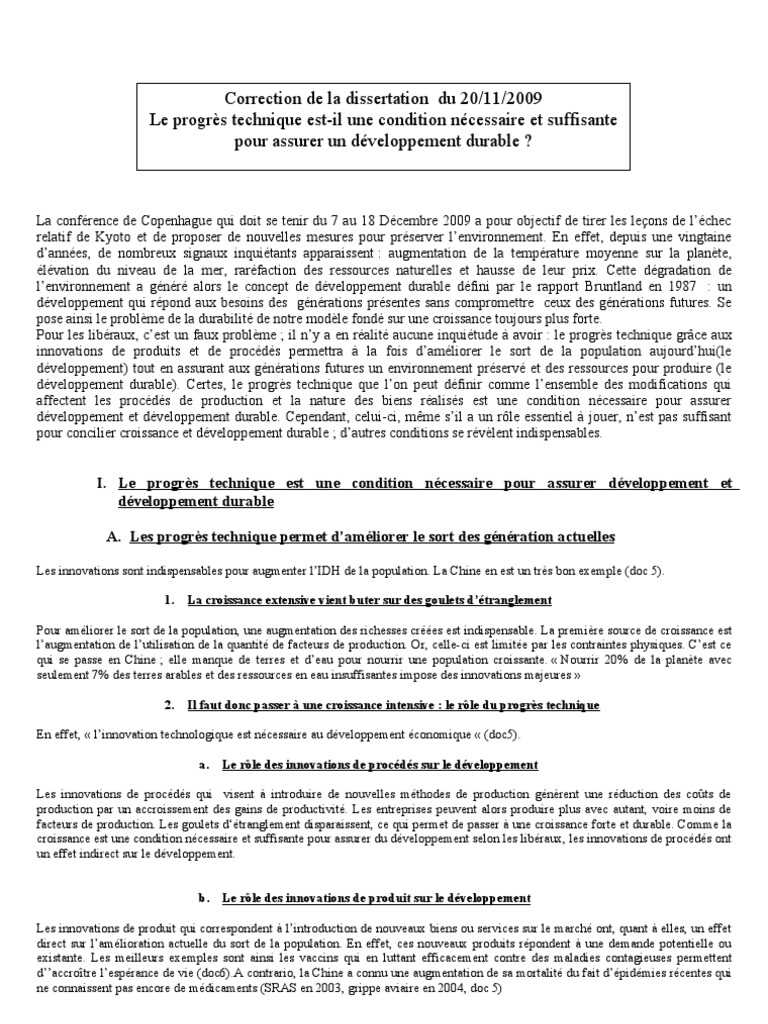 Dissertation sur le développement et l'environnement INTRODUCTION: La grande question du XX° siècle a été de savoir si la technologie allait changer la vie des gens , grâce aux progrès scientifiques et techniques de notre siècle . Nous avons évidemment améliorer notre qualité de vie , mais découvert en même temps la fragilité de . . .