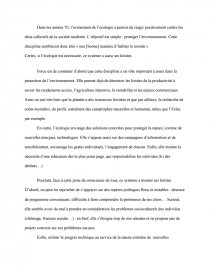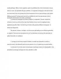 Ecologie . 695 mots 3 pages . Montre plus . DISSERTATION 1 : Une grande attention est apportée aujourd'hui à l'écologie, science des Etres vivants dans leurs relations avec le milieu naturel, partie essentielle de notre environnement . Dites quel est votre avis à ce sujet . L'écologie fait certainement comprendre que entre l'homme et l . . .
