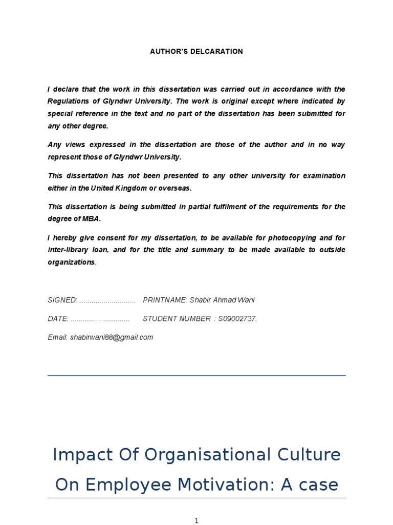 Dissertation Employee Motivation