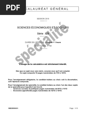 Corrige Dissertation Bac Ses 2019