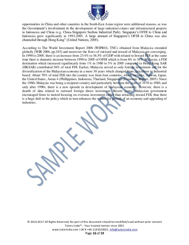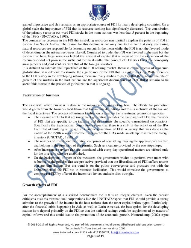 Dissertation Report on Foreign Direct Investment and Its . . .
