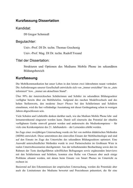 Dissertation Kurzfassung - pleinschoolhelder .info