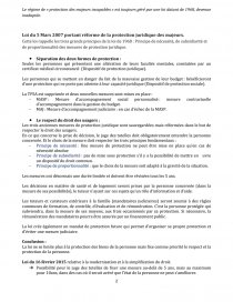 Le rôle du majeur dans les régimes de protection issus de la loi du 5 mars 2007 Tout le régime de l'incapacité des majeurs reposait sur la loi n° 68-5 du 3 janvier 1968, instituant différents régimes de protections du majeur , dont la sauvegarde de justice, la curatelle et la tutelle .