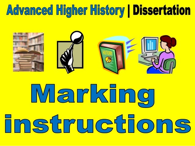 The marking criteria outlined above are used when assessing the History MA dissertation . Dissertations , like all written assessed work in the department, are judged on the following criteria : language, structure, argument, coverage, relevance, research, and presentation .