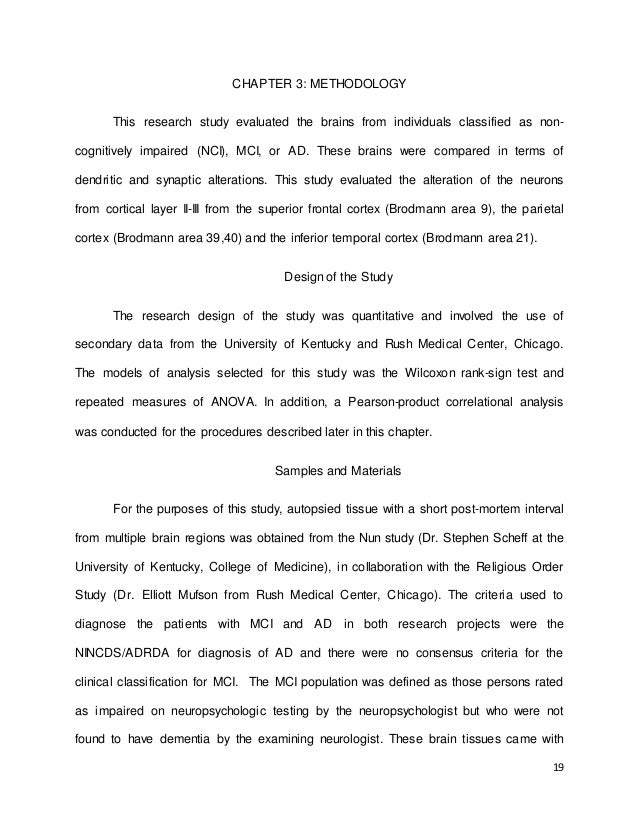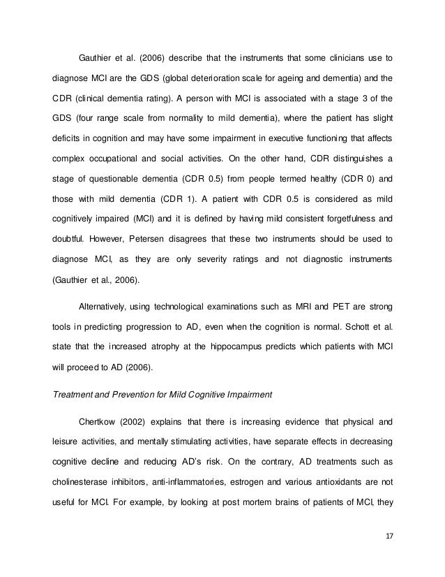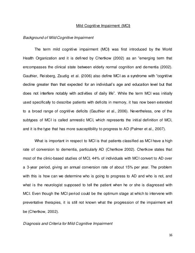 methods and procedures for the dissertation are described in detail, including study design, recruitment and sampling procedures, measures, and statistical analyses . Finally, results are presented and conclusions based on the findings are discussed . Mild Cognitive Impairment MCI is thought to be a state of cognitive functioning characterized by . . .