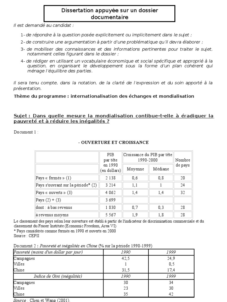Dissertation Sur La Mondialisation Terminale