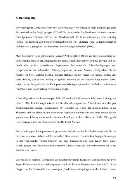 Ohne Ihre liebevolle Fürsorge wäre diese Arbeit nicht zu dem Werk geworden, welches sie heute ist ." „Eine wissenschaftliche Arbeit ist nie das Werk einer einzelnen Person, deshalb ist es jetzt an der Zeit, mich bei allen Menschen zu bedanken, die mir die Erstellung meiner Dissertation ermöglicht haben .