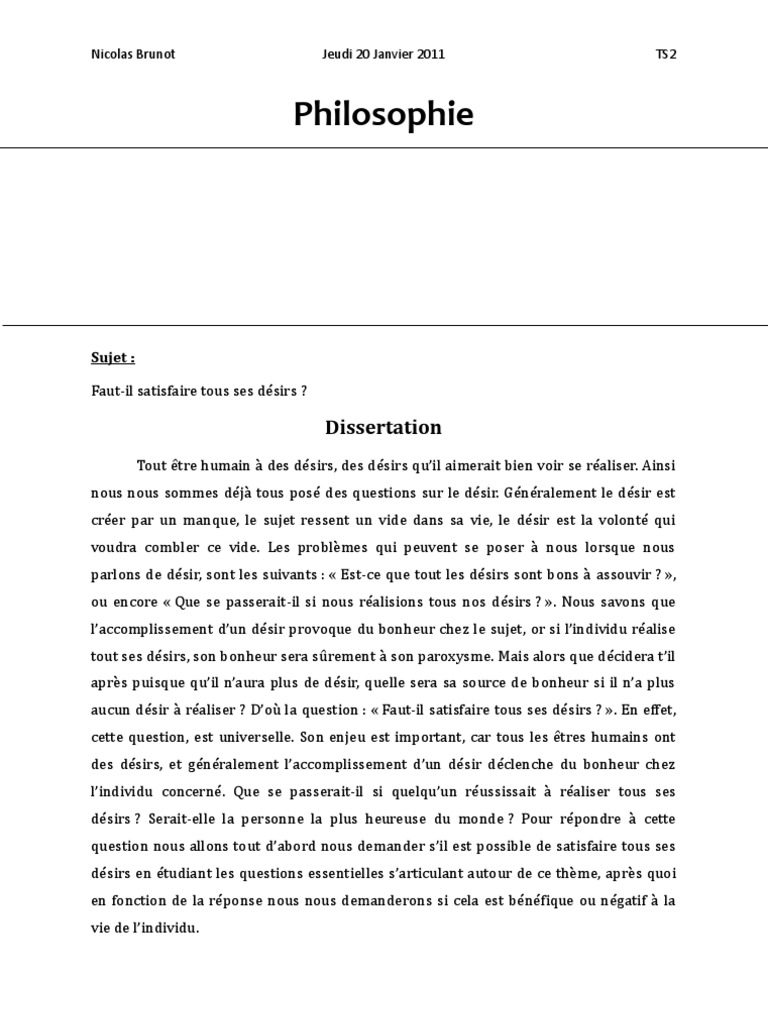 Dissertation Philosophie Desir Corriges