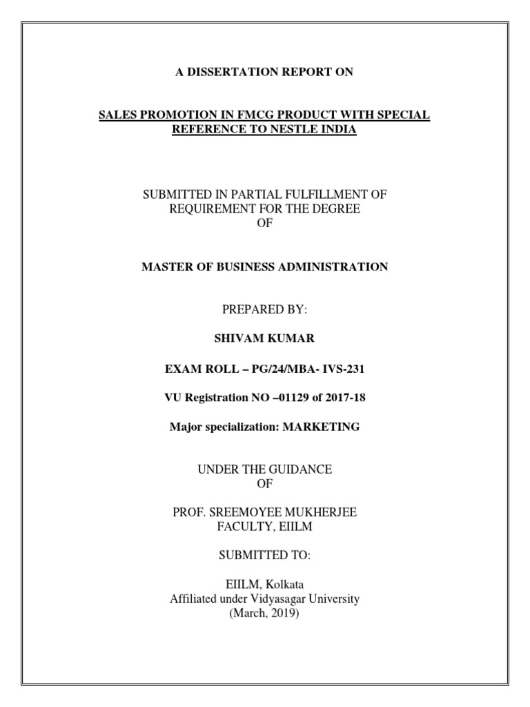 Dissertation Report On Fmcg Products