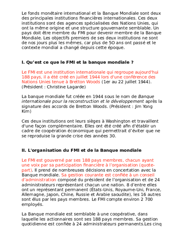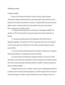 Lisez ce Sciences Economiques et Sociales Dissertation et plus de 257 000 autres dissertation . La Banque mondiale, FMI . FMI /Banque mondiale La Banque mondiale Créée en 1944 à Bretton Woods dans le cadre du nouveau système monétaire international, la . . .