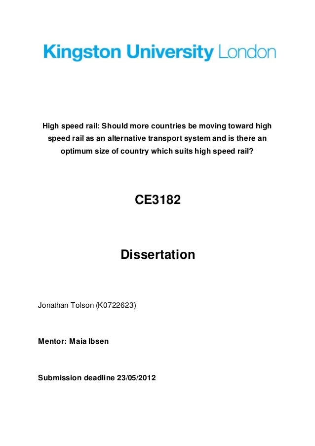 Example MSc Transport Planning and Engineering dissertation titles A case study of Great Ormond Street Hospital's Patient Transport Services A demand and capacity assessment model for rail