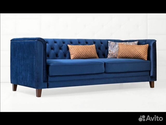На фото: Красивый синий диван в стиле неоклассика Среди форм наиболее удобны прямая и угловая, в зависимости от того, как именно вы привыкли смотреть телевизор .