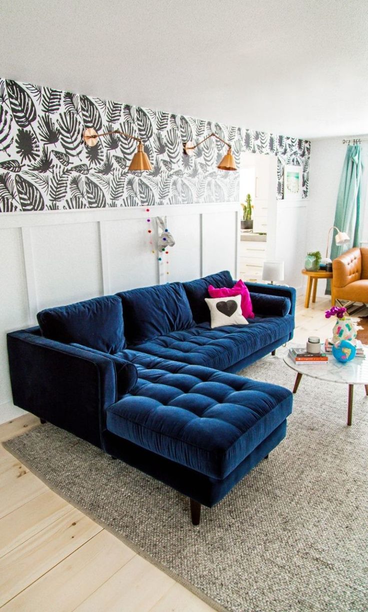 Диван Синего Цвета В Интерьере Фото 118 фотографий
