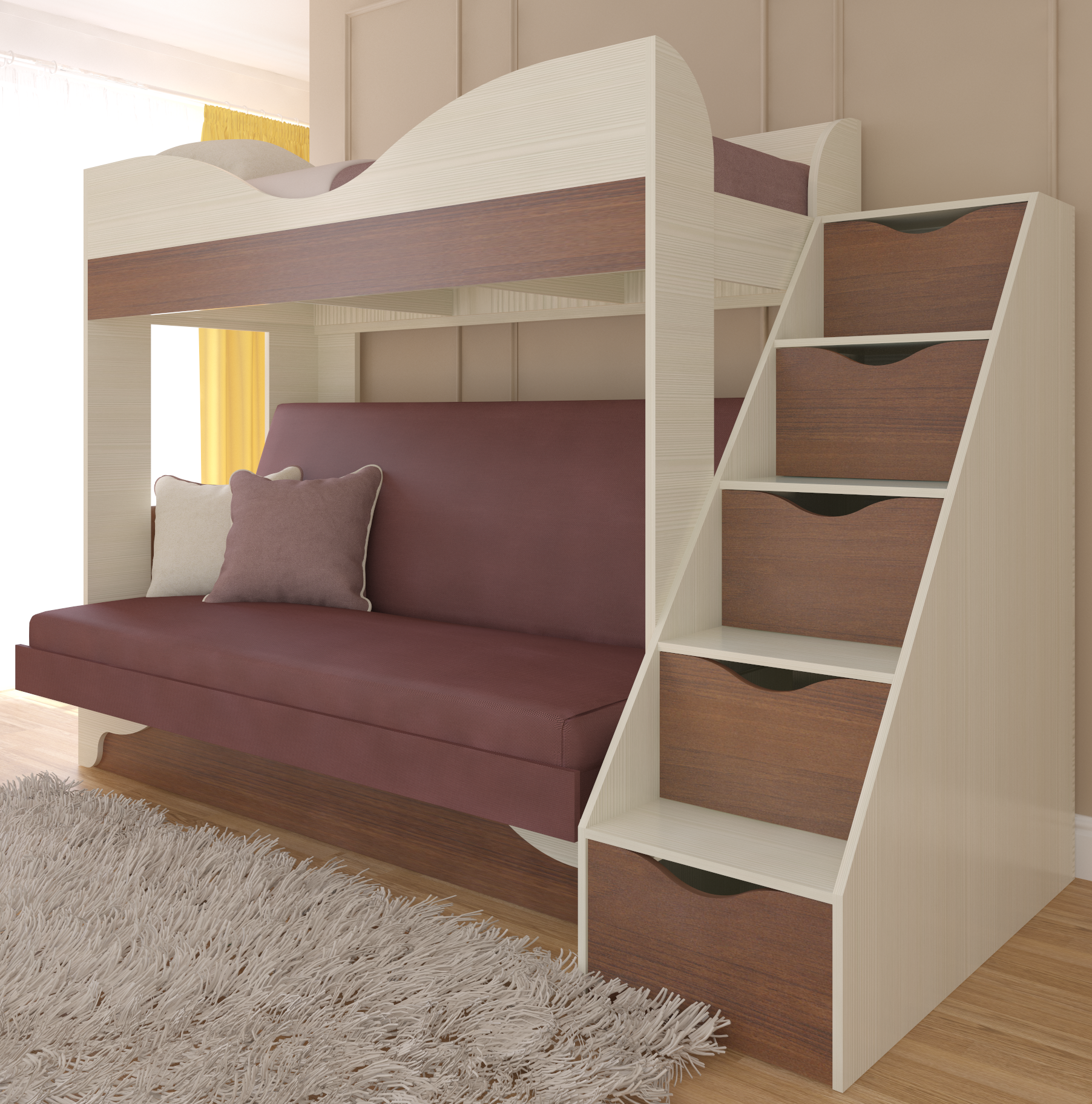 Диван Аккордеон Модерн отлично подходит для тех, кто хочет максимально эффективно использовать пространство в доме. В сложенном виде он выглядит очень компактно, а механизм позволяет превращать его в большое спальное место.