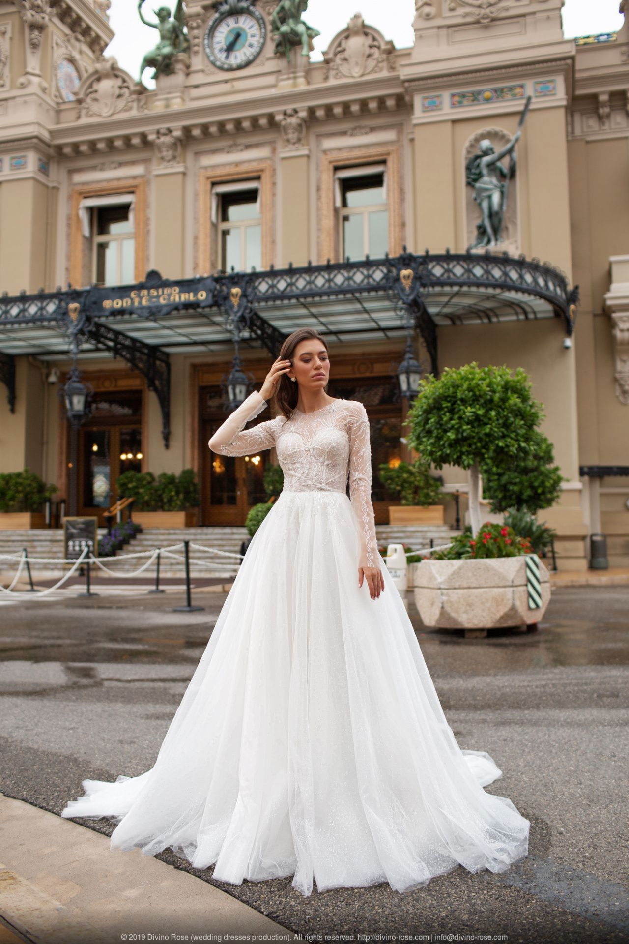 Свадебные платья Divino Rose отличаются элегантным верхом и роскошными юбками с длинным шлейфом . Бренд славится задействованием необычных фактур и материалов высокого качества .